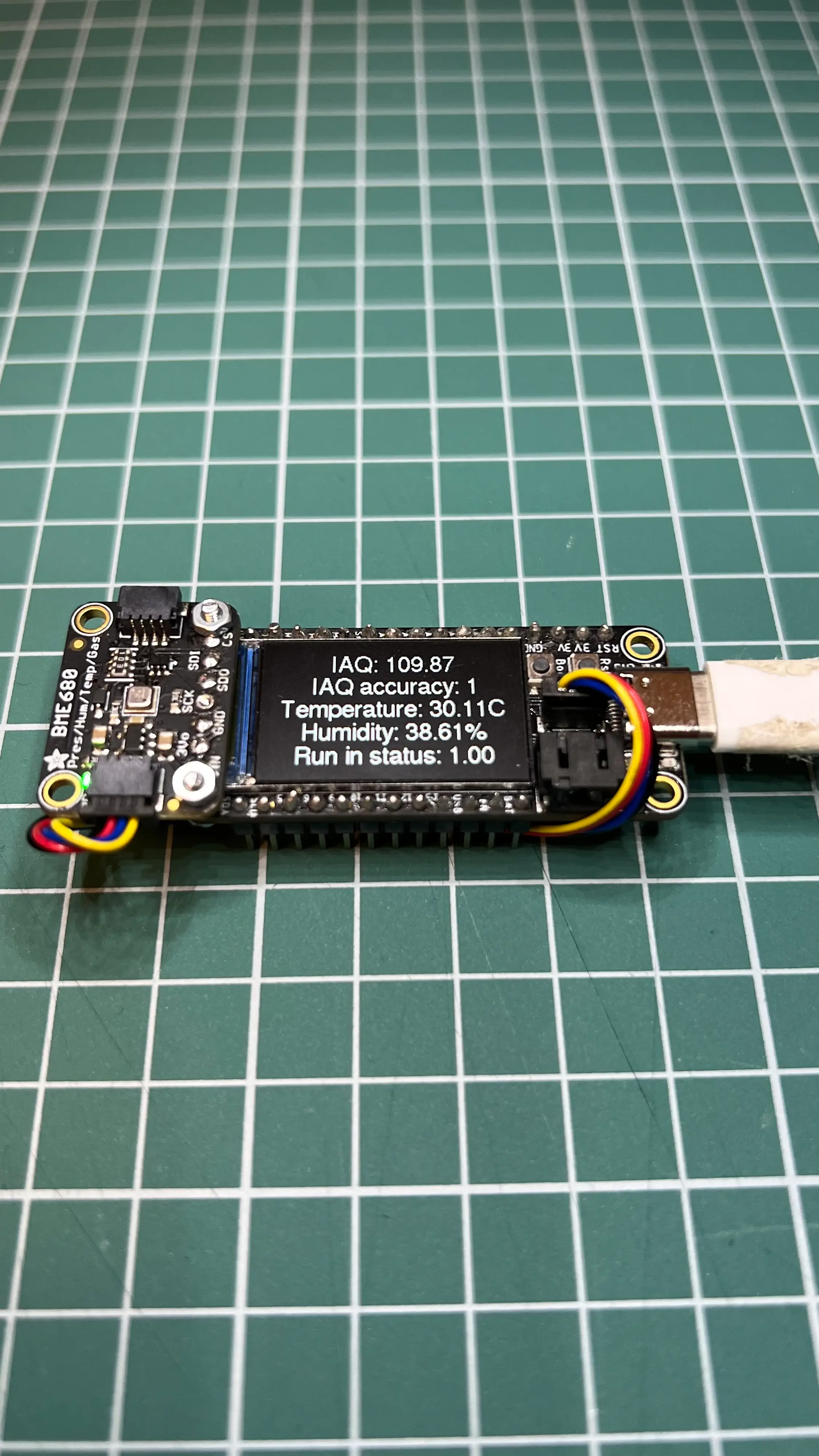 A small but precise device with a built-in screen, that will measure and display the quality, humidity (%) and temperature of the air around the it. The measurements are wirelessly uploaded and available on my site, where it is graphed in real time.